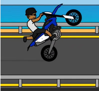 - Realistic physics – Tilt the bike with delicate throttle (D) and brake (A) inputs. Too much throttle flips you over; too little drops the front wheel. Find the sweet spot to keep the wheelie alive